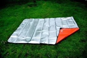 Многофункциональное покрывало с термоизоляцией Multi Purpose Emergency Blanket. Покрывало выполнено из прочного влагозащитного ветроустойчивого материала, отражающего до 80% излучаемого тепла от тела обратно. Для наибольшей прочности углы усилены люверсами, а края дополнительно окантованы. Оно может использоваться как покрывало для пикника, как подстилка под палатку или как спасательное одеяло, позволяющее сохранить своё собственное тепло в чрезвычайных ситуациях. Компактный размер делает его идеальным в качестве аварийного комплекта в вашем автомобиле. Изготовлено из полиэтиленовой пленки, алюминия и армирующего материала Astrolar.
